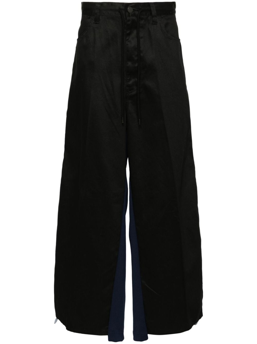 contrasting-panel track pants Highlights - Black/multicolour - Cotton - Front button and zip fastening - Panelled design - Drawstring waist - Rear elasticated waistband - Belt loops - Two side slash pockets - Two rear welt pockets - Logo patch to the rear - Stripe trim - Short side slits - Step hem Imported Composition Cotton 100% SIZE & FIT Model measurements Height 6 ft 1 in(1.85 m) Bust/Chest 35.43 in(90 cm) Hips 36.22 in(92 cm) Waist 28.74 in(73 cm) FittingInformation Designed with a wide leg, offering a loose and roomy fit The partially elasticated waistband offers increased movement and comfort at the waist Made from a midweight non-stretch fabric