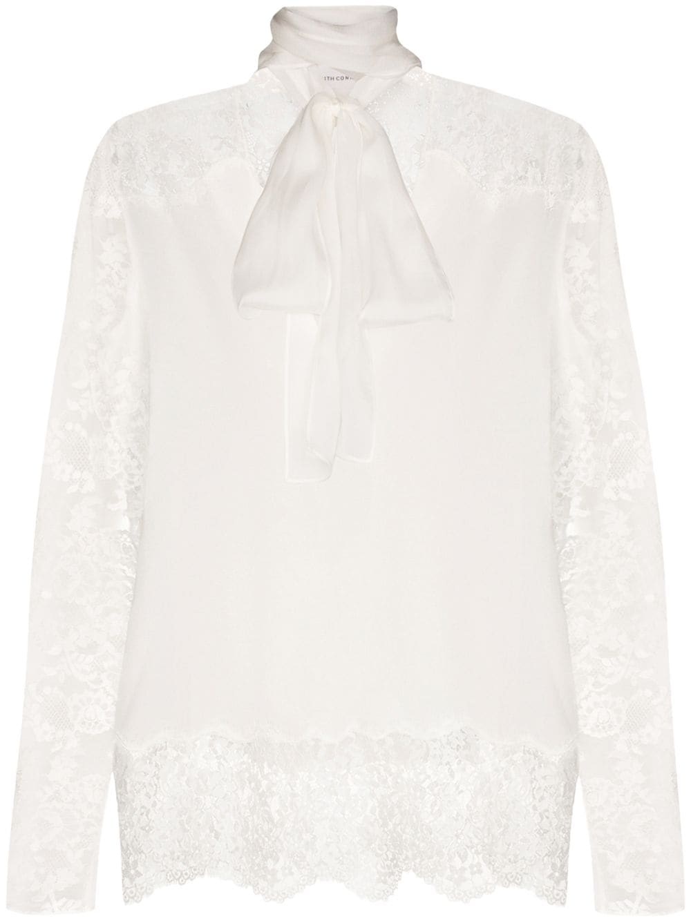 Lace detail pussy bow blouse Starting to feel like you're falling out of love with your wardrobe? Keep the spark alive with this perfectly romantic white silk blend Lace detail pussy bow blouse from Faith Connexion that has a charming floral pattern adorning the contrasting panels. Don't deny it, you're completely smitten with this look. Featuring a sweetheart neckline, a floral pattern, contrasting panels and long sleeves. Imported Composition Silk 100%, Cotton 50%, Polyamide 50% SIZE & FIT Model measurements Height 5 ft 9 in(1.76 m) Bust/Chest 34.25 in(87 cm) Hips 36.22 in(92 cm) Waist 25.19 in(64 cm) FittingInformation This piece fits true to size. We recommend you get your regular size Cut for a relaxed fit Made with a mid-weight non-stretch fabric Washing instructions Dry Clean Only