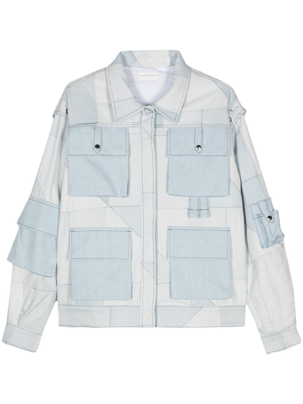 panelled denim jacket Highlights - Light blue - Cotton - Washed denim - Panelled design - Metal eyelet detailing - Spread collar - Concealed front press-stud fastening - Drop shoulder - Long sleeves - Press-stud fastening cuffs - Multiple cargo pockets - Full lining - Straight hem Made in Italy Composition Cotton 100%