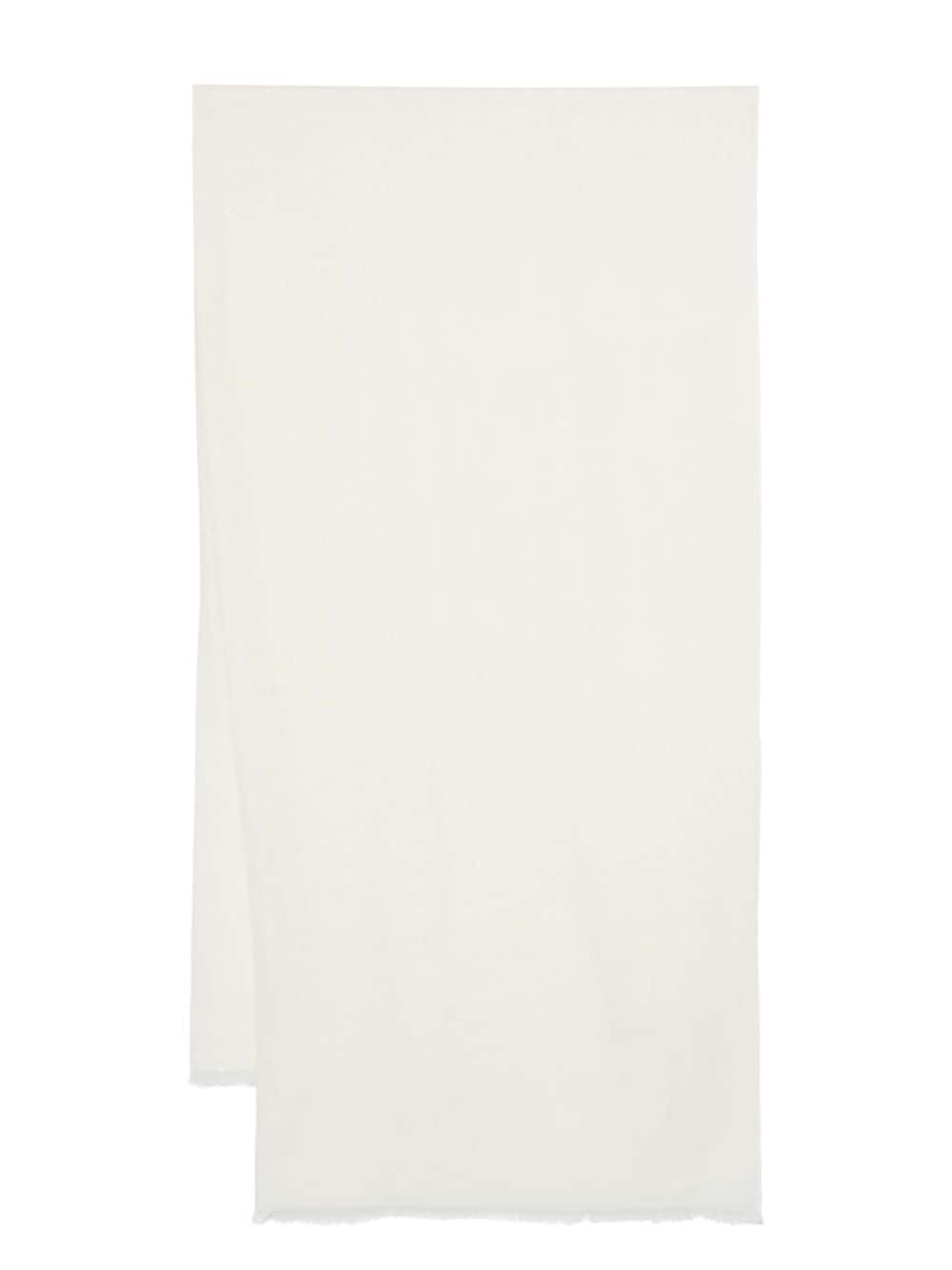 frayed scarf Highlights - Off-white - Wool blend - Gabardine weave - Frayed edge - Wraparound style Made in Italy Composition Wool 98%, Polyester 2% SIZE & FIT Measurement LENGTH 76.77 in(195 cm) WIDTH 37.4 in(95 cm)