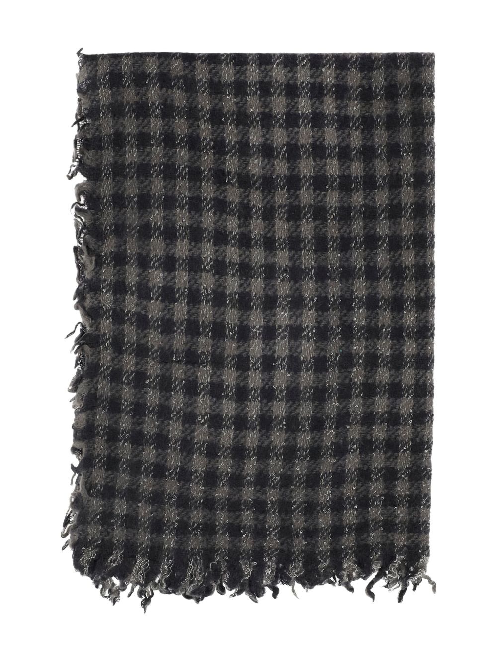 gingham frayed scarf Highlights - Black - Gingham pattern - Frayed edges - Rectangular shape Made in Italy Composition Cashmere 42%, Wool 27%, Silk 17%, Polyamide 14% Washing instructions Read Manufacturer Guidelines