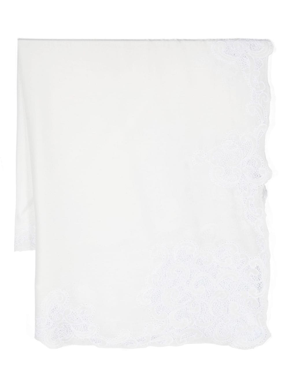 Scilly cotton-blend scarf Highlights - White - Cotton blend - Interwoven design - Broderie anglaise - Scallop edge - Rectangle shape - Wraparound style Made in Italy Composition Cotton 60%, Polyester 20%, Viscose 10%, Silk 10% SIZE & FIT Measurement LENGTH 53.14 in(135 cm) WIDTH 53.14 in(135 cm)