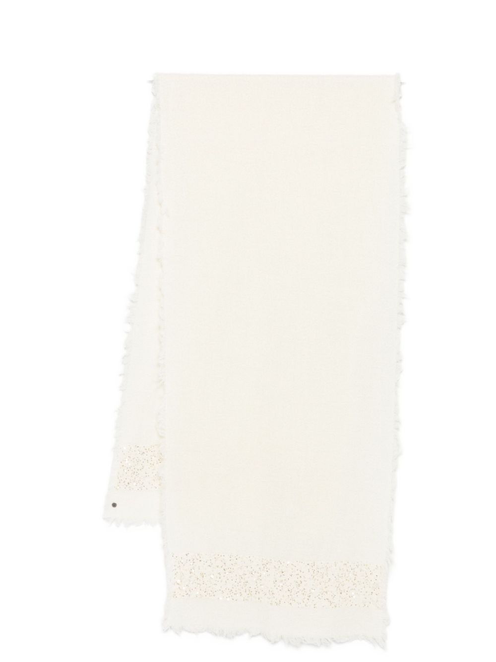 sequin-embellished fringed scarf Highlights - Light beige - Sequin embellishment - Fringed trim Made In Italy Composition Virgin Wool 66%, Cashmere 16%, Nylon 13%, Polyester 3%, Silk 2% SIZE & FIT Measurement LENGTH 74.8 in(190 cm) WIDTH 17.71 in(45 cm)
