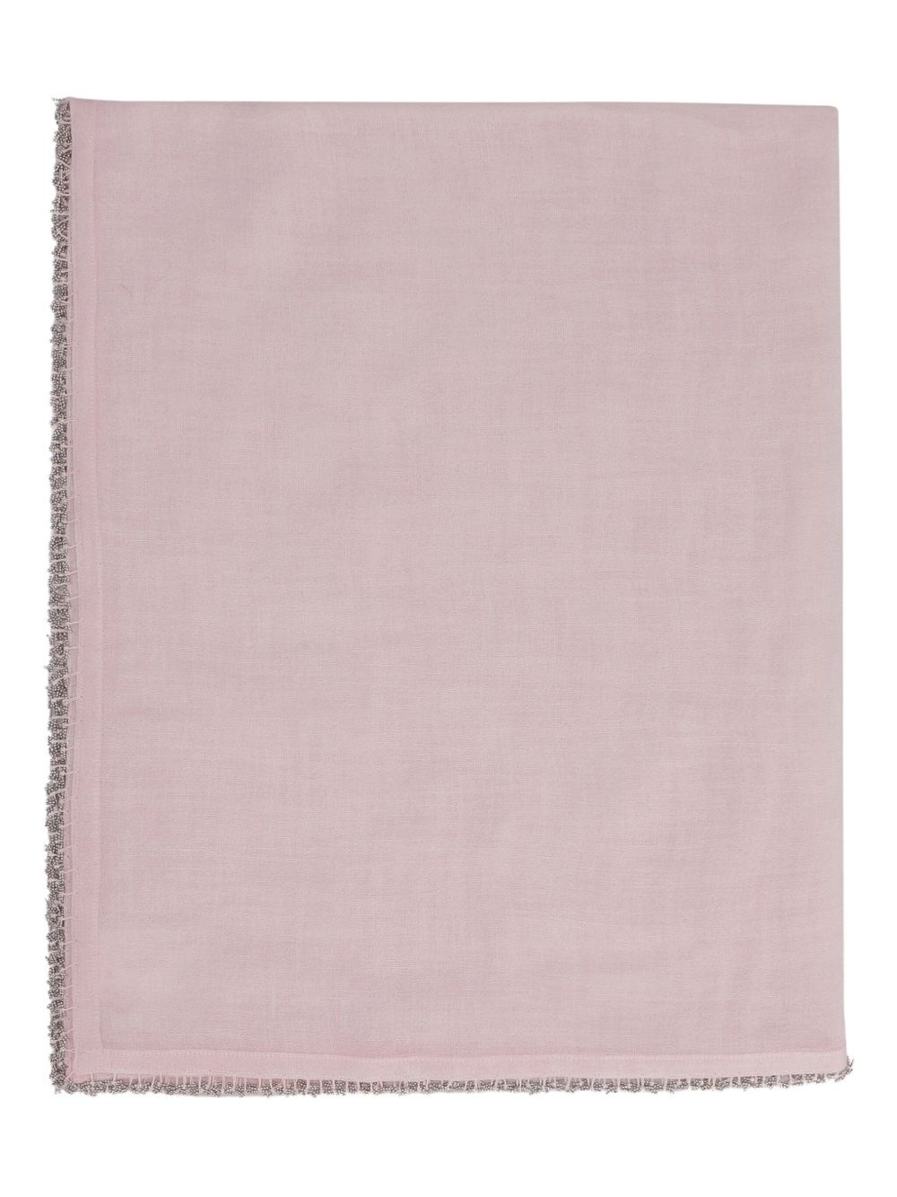 Shakira virgin wool scarf Highlights - Light pink - Rectangle shape - Frayed edge - Bead embellishment Made in Italy Composition Virgin Wool 100% SIZE & FIT Measurement LENGTH 68.89 in(175 cm) WIDTH 27.55 in(70 cm)