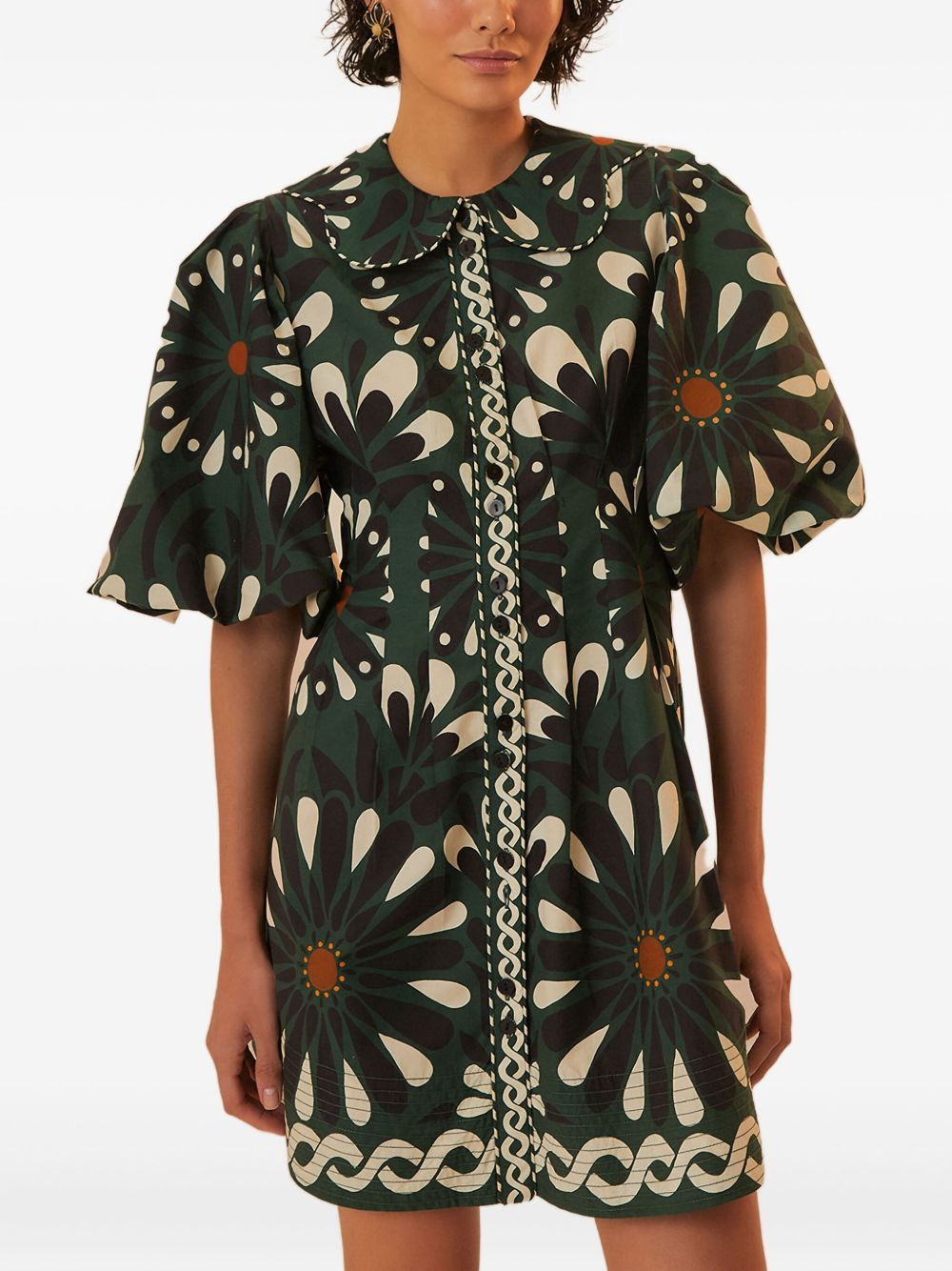 Ainika Flowers Peter Pan-collar puff-sleeve mini dress Highlights - Dark green - Floral print - Puff sleeves - Peter pan collar - Button fastening - Chain trim Imported Composition Cotton 100% Washing instructions Read Manufacturer Guidelines