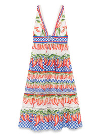 Ainika midi dress Highlights - White - Front tie fastening - Mix print - Wide shoulder straps - V-neck - Sleeveless Imported Composition Cotton 100% SIZE & FIT Model measurements Height 5 ft 9 in(1.75 m) Bust/Chest 34.64 in(88 cm) Hips 36.61 in(93 cm) Waist 26.37 in(67 cm) FittingInformation Designed for a close fit at the chest with a loose fit over the waist and hips Made from a midweight non-stretch fabric