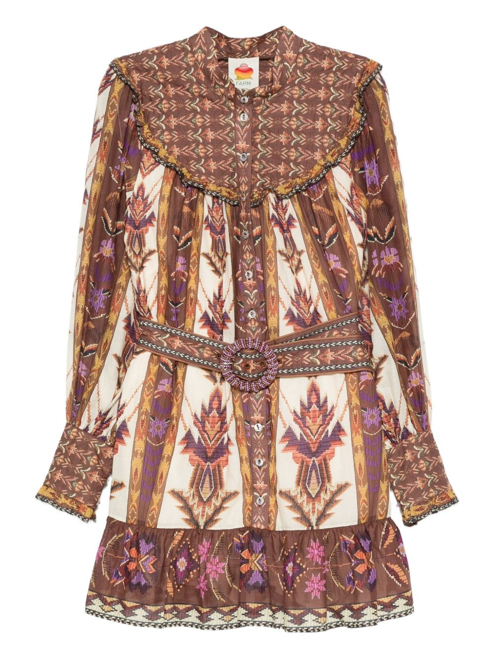 Sand Embroidered Tapestry Long Sleeve Mini Dress