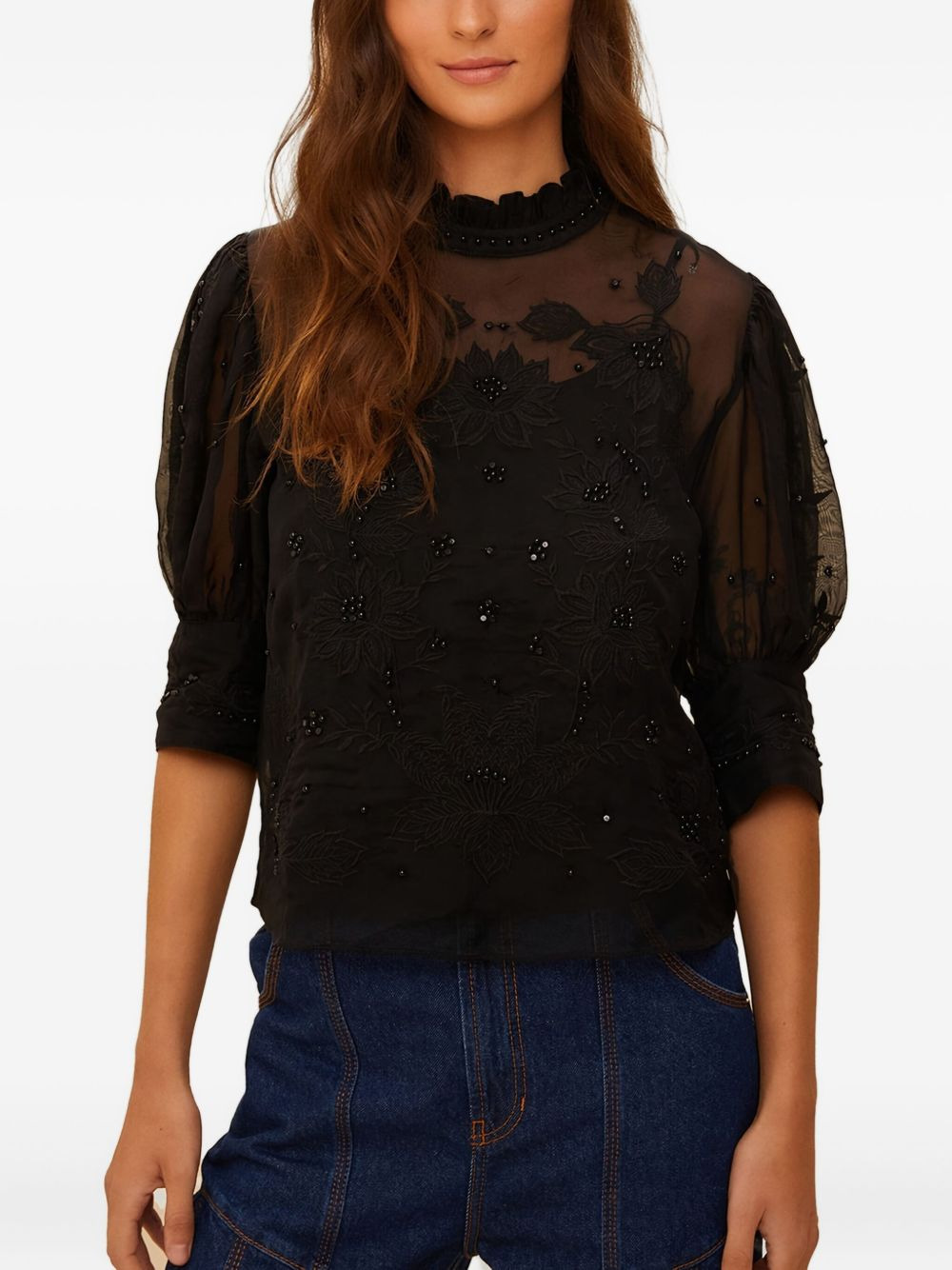 beaded floral-embroidered top Highlights Imported Composition Viscose 100%