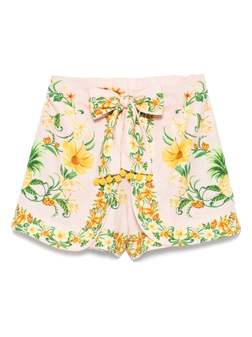 Botanical Beauty shorts Highlights - Light pink - Front tie fastening - Rear elasticated waistband - Layered design - Thigh-length Imported Composition Linen/Flax 55%, Viscose 45% SIZE & FIT Model measurements Height 5 ft 11 in(1.8 m) Bust/Chest 31.49 in(80 cm) Hips 35.82 in(91 cm) Waist 24.8 in(63 cm) FittingInformation Designed with a voluminous wide-leg fit The partially elasticated waistband offers increased movement and comfort at the waist Made from a midweight non-stretch fabric