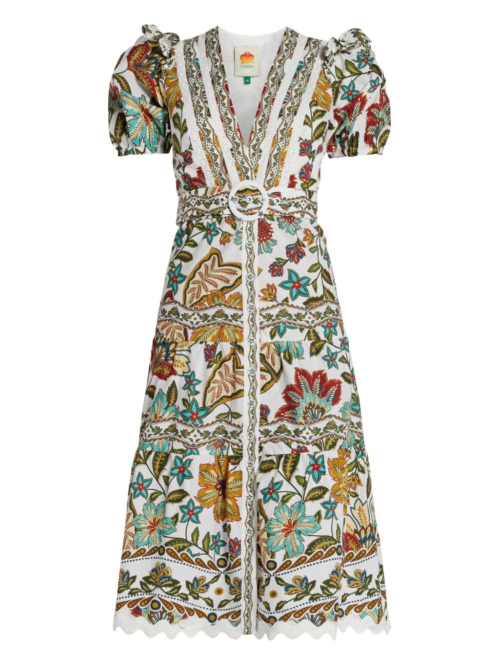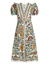 Botanicals midi dress Highlights - White - V-neck - Short sleeves - Belted waist - Scallop hem Imported Composition Cotton 100% Washing instructions Read Manufacturer Guidelines