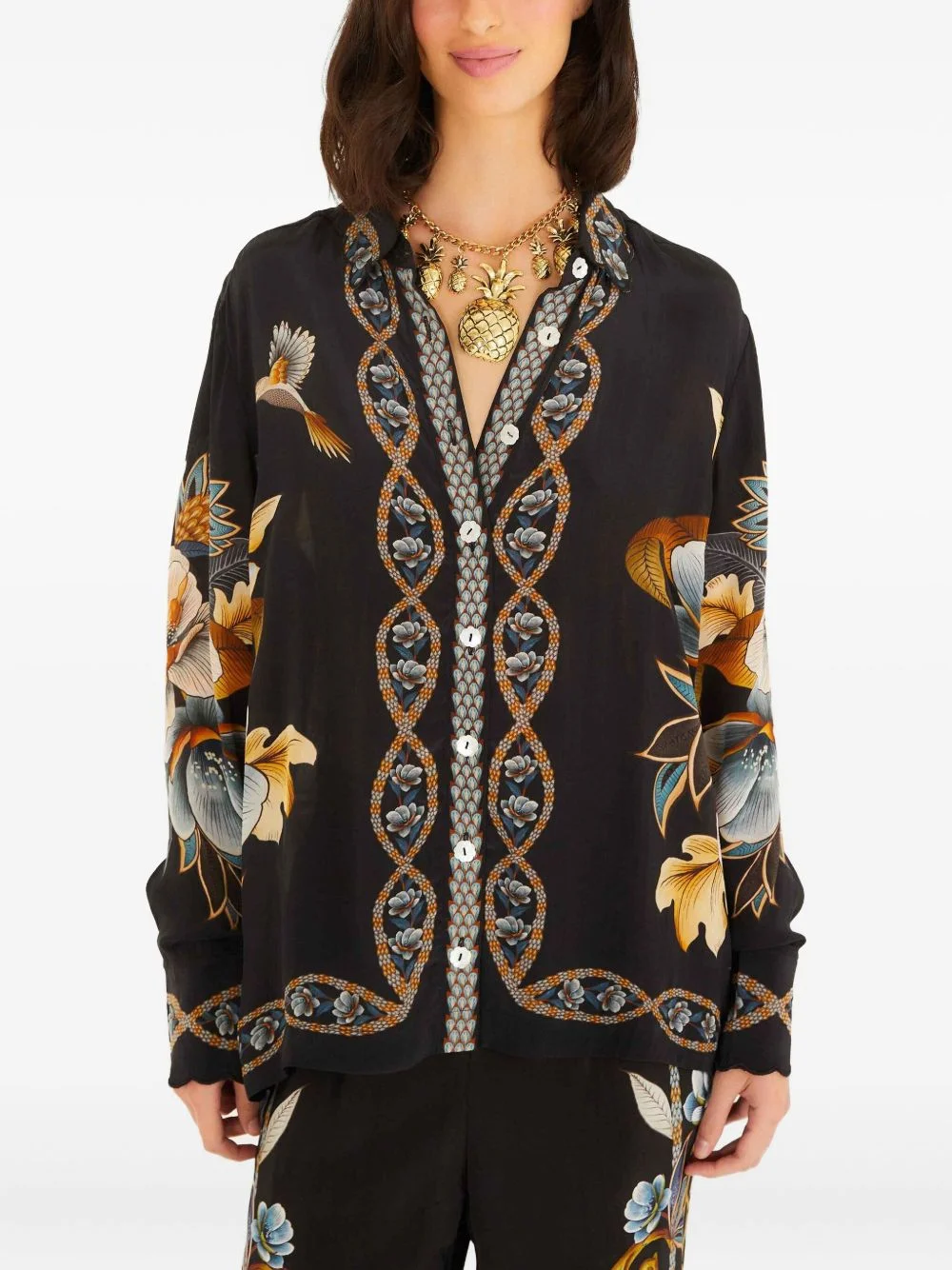 buttoned floral shirt Highlights - Black - Floral print - Button fastening - Long sleeves - Buttoned cuffs Imported Composition Viscose 100% Washing instructions Read Manufacturer Guidelines