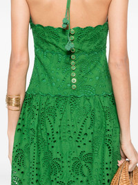 cotton midi dress Highlights - Emerald green - Rear button fastening - Halterneck tie fastening - Open back - Flared hem Imported Composition Lining: Cotton 100% Outer: Cotton 100% SIZE & FIT Model measurements Height 5 ft 11 in(1.8 m) Bust/Chest 31.49 in(80 cm) Hips 35.82 in(91 cm) Waist 24.8 in(63 cm) FittingInformation Designed for a close fit at the chest and waist with a loose fit at the hip The internal slip sits just away from the body, offering a close yet comfortable fit Made from a midweight non-stretch fabric, this piece offers minimal elasticity when worn Washing instructions Hand Wash