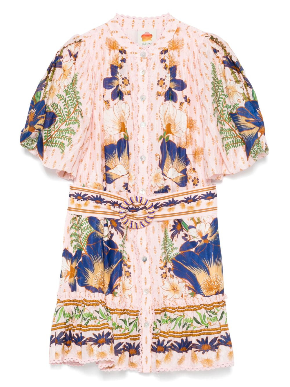 Dream Garden mini dress Highlights - Flamingo pink - Front button fastening - Detachable and adjustable waist belt - Short puff sleeves Imported Composition Cotton 60%, Viscose 40% SIZE & FIT Model measurements Height 5 ft 10 in(1.77 m) Bust/Chest 32.28 in(82 cm) Hips 35.03 in(89 cm) Waist 25.19 in(64 cm) FittingInformation Designed for a relaxed fit, this piece allows for comfort and movement when worn The belt offers adjustability for fitted preferences Made from a midweight non-stretch fabric Washing instructions Machine Wash