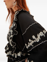 embroidered ruffled top Highlights - Black - Floral embroidery - Ruffled trims - Long sleeves - Ribbed cuffs Imported Composition Cotton 100% Washing instructions Read Manufacturer Guidelines