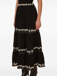 embroidered tiered midi skirt Highlights - Black - Off-white floral embroidery - Tiered design - Ruffled hem - Cotton fabric Imported Composition Cotton 100% Washing instructions Read Manufacturer Guidelines