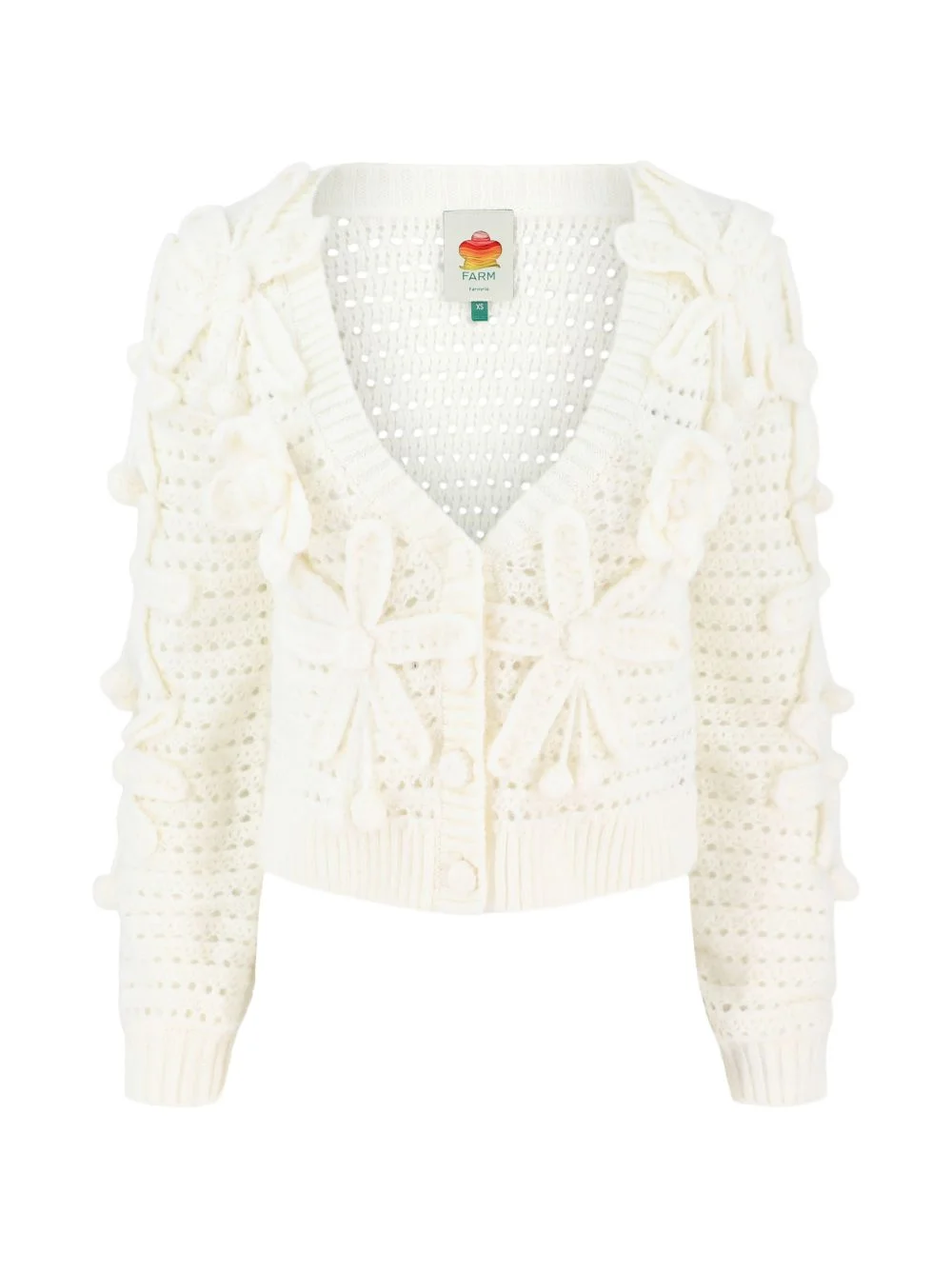 floral-applique cardigan Highlights - Off-white - Button fastening - V-neck Imported Composition Body: Acrylic 53%, Nylon 35%, Wool 8%