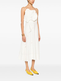 floral-applique midi dress Highlights - White - Adjustable spaghetti straps - Smocked panel - Flared Imported Composition Outer: Linen/Flax 55%, Viscose 45% Lining: Viscose 100% SIZE & FIT Model measurements Height 5 ft 9 in(1.76 m) Bust/Chest 31.88 in(81 cm) Hips 35.43 in(90 cm) Waist 24.8 in(63 cm) FittingInformation Designed for a close fit at the chest and waist with a loose fit at the hip The adjustable shoulder straps allow for a preferred fit when worn Made from a midweight non-stretch fabric Washing instructions Hand Wash