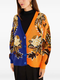 floral button cardigan Highlights - Blue and orange - Button fastening - V-neck - Long sleeves - Ribbed hem Imported Composition Acrylic 55%, Polyamide 35%, Wool 10% Washing instructions Read Manufacturer Guidelines