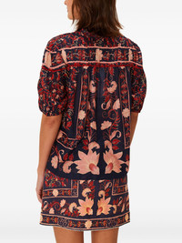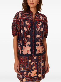 floral buttoned top Highlights - Navy blue - Floral print - Button fastening - Short sleeves - Ruffled detail - Stand collar Imported Composition Cotton 100% Washing instructions Machine Wash