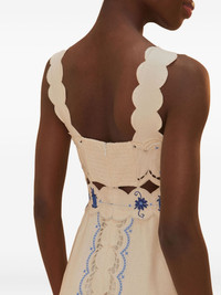 floral-embroidered dress Highlights - White/blue - Floral embroidery - Eyelet detailing - Scallop hem - Sleeveless - Rear zip fastening Imported Composition Linen/Flax 55%, Viscose 45% Washing instructions Read Manufacturer Guidelines