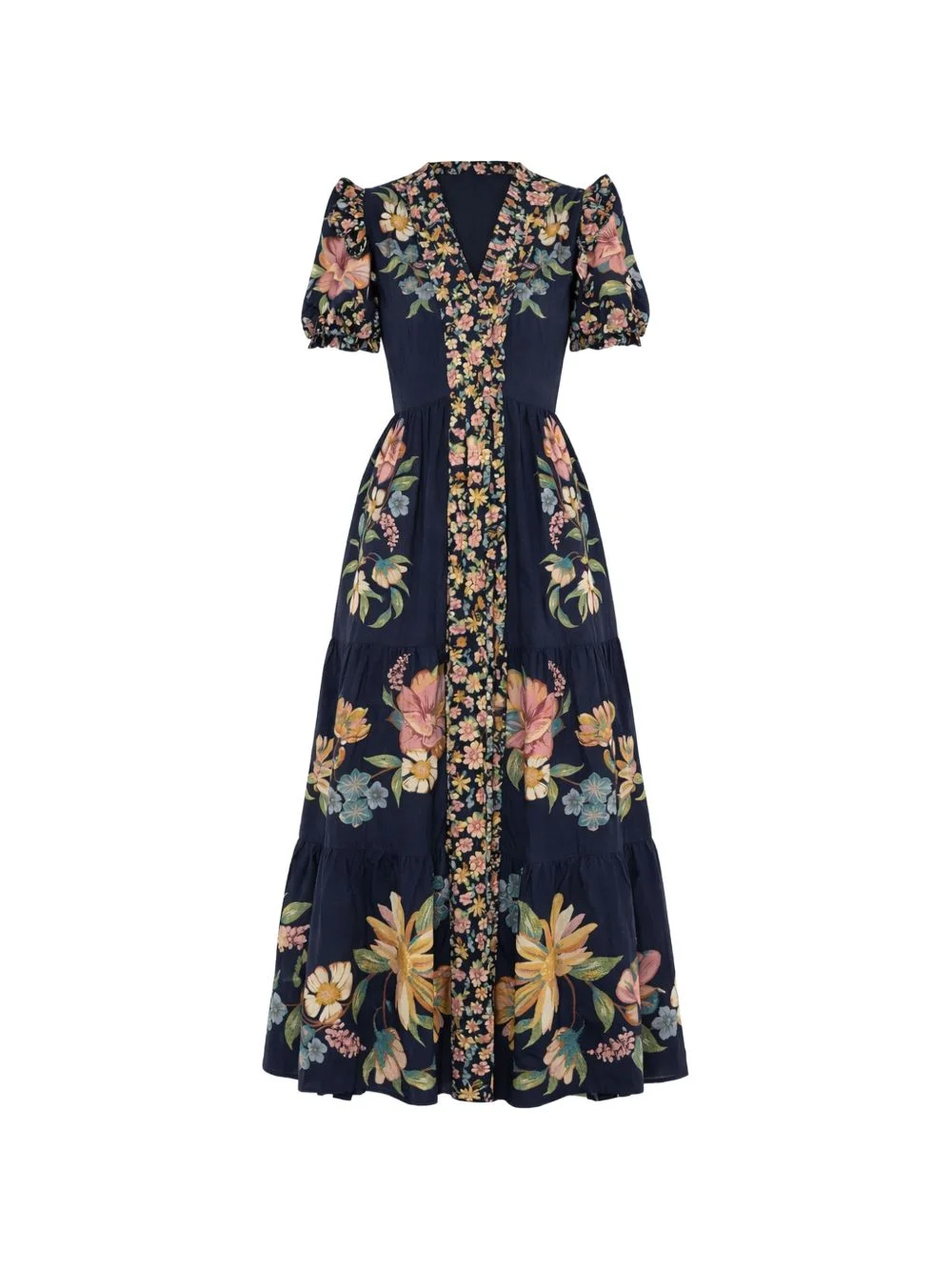 Dark Blue Maira Floral Short Sleeve Maxi Dress