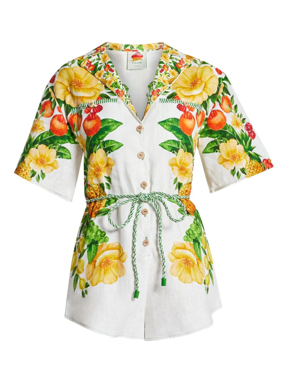 floral-print belted jumpsuit Highlights Imported Composition Linen/Flax 100%