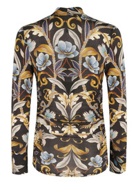 floral-print blouse Highlights - Black - Floral print - Long sleeves - High neck Imported Composition Rayon 85%, Elastane 15% Washing instructions Machine Wash