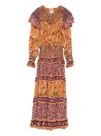 floral-print dress Highlights - Brown - Crew neck - Front button fastening - Long sleeves - Ruffled detailing Imported Composition Outer: Viscose 100% Lining: Viscose 100% SIZE & FIT Model measurements Height 5 ft 9 in(1.75 m) Bust/Chest 32.67 in(83 cm) Hips 36.22 in(92 cm) Waist 24.8 in(63 cm) Washing instructions Machine Wash