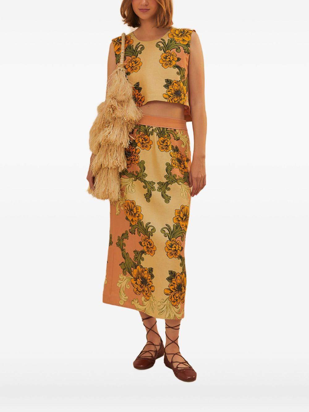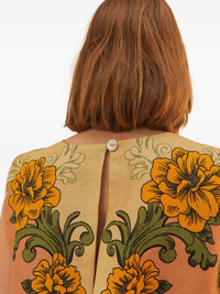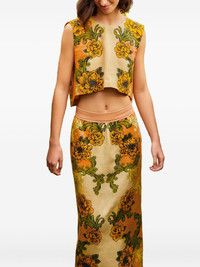 floral-print linen top Highlights - Beige - Rear button fastening - Crew neck - Sleeveless - Cropped Imported Composition Linen/Flax 100% Washing instructions Read Manufacturer Guidelines
