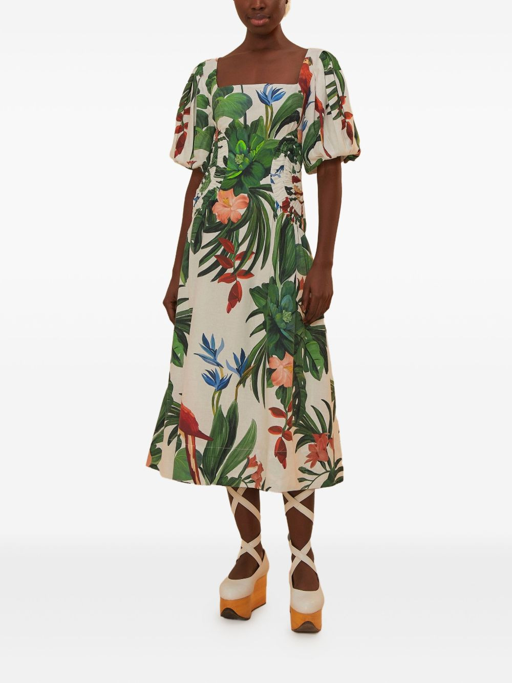 floral-print midi dress Highlights - White/multicolor - Floral-print - Short sleeves - Square neck - Rear zip fastening Imported Composition Outer: Linen/Flax 55%, Viscose 45% Lining: Cotton 100% Washing instructions Read Manufacturer Guidelines