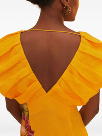 floral-print midi dress Highlights - Yellow - Linen/flax - V-neck - Floral print - Side slit - Pleated detail - Sleeveless Imported Composition Linen/Flax 100% Washing instructions Read Manufacturer Guidelines