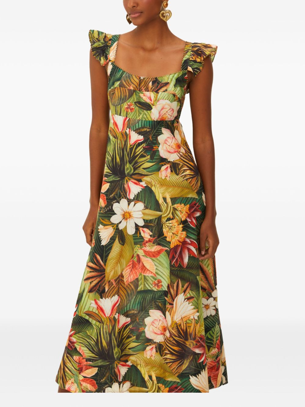 floral-print midi dress Highlights - Green /multicolor - Cotton - All-over floral print - Ruffled sleeves - Square neck Imported Composition Cotton 100% Washing instructions Read Manufacturer Guidelines