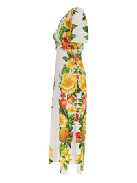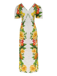 floral-print puff-sleeve maxi dress Highlights - Off-white - Floral print - Puff sleeves - V-neck - Braided trim - Side split Imported Composition Organic Linen 100% Washing instructions Read Manufacturer Guidelines