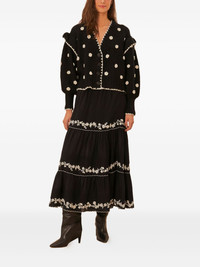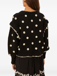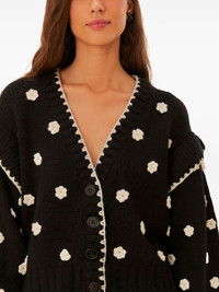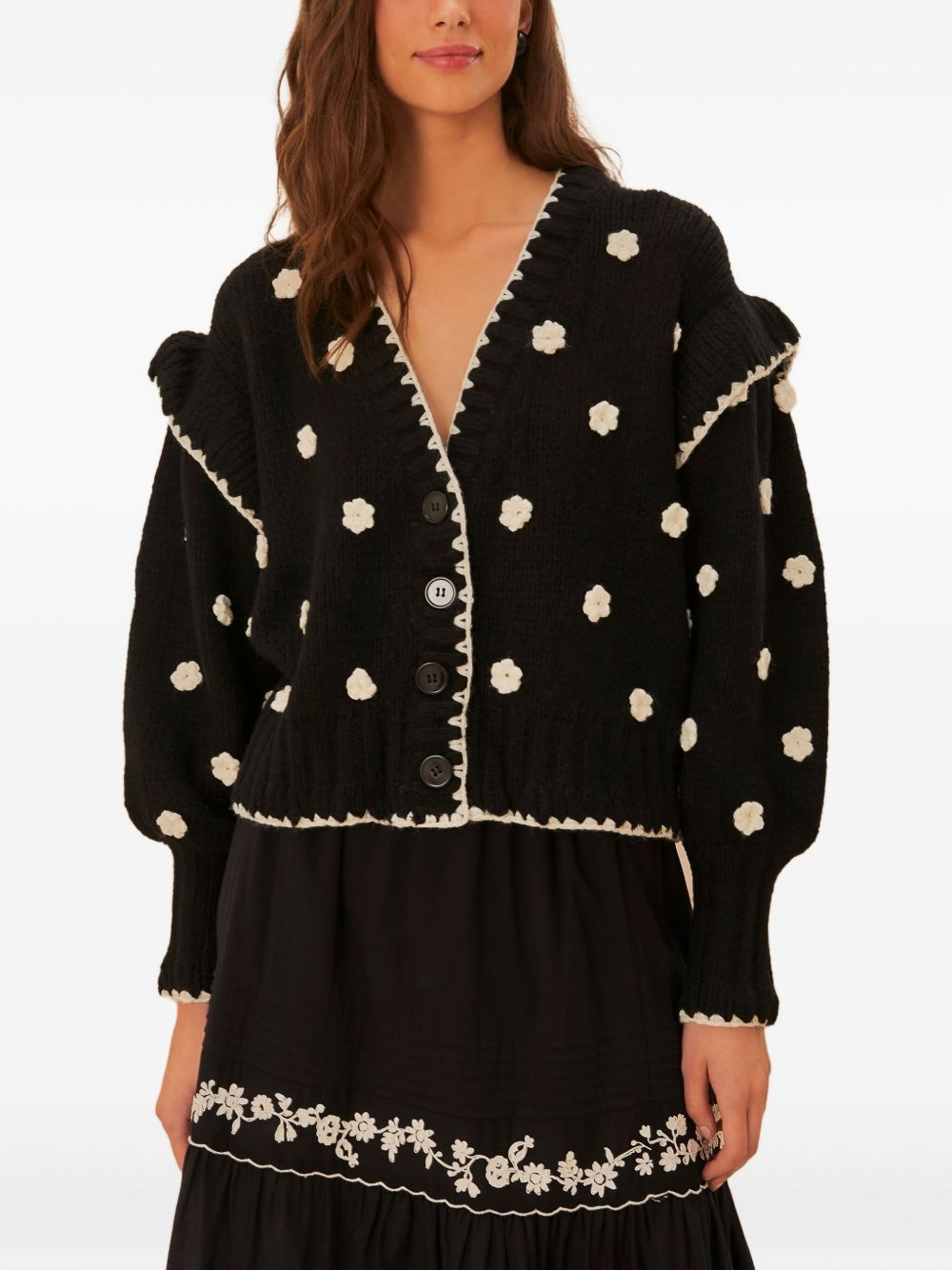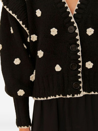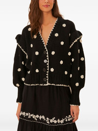 flower-embellished ruffled cardigan Highlights - Black - Flower embellishments - Ruffled shoulders - Crochet trim - Button fastening - V-neck Imported Composition Acrylic 100% Washing instructions Read Manufacturer Guidelines
