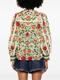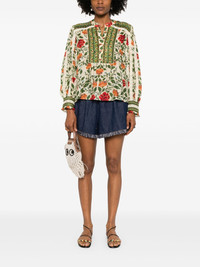 Garden Tapestry blouse Highlights - Light green - Short front button fastening - Long sleeves - Ruffle cuffs Imported Composition Cotton 60%, Viscose 40% SIZE & FIT Model measurements Height 5 ft 11 in(1.8 m) Bust/Chest 32.67 in(83 cm) Hips 35.82 in(91 cm) Waist 25.98 in(66 cm) FittingInformation Designed to be unstructured, offering a loose fit throughout Made from a lightweight non-stretch fabric Washing instructions Machine Wash