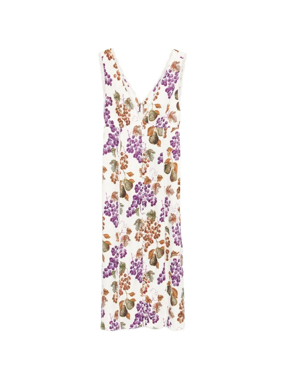 Grape Garden sleeveless midi dress Highlights - Cream - Grape print - V-neck - Sleeveless - Scalloped trim Imported Composition Viscose 100% Washing instructions Machine Wash