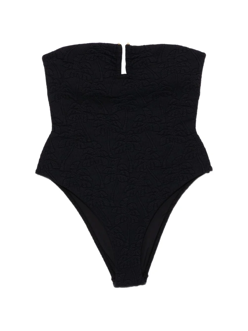 graphic-embroidered swimsuit Highlights - Black - Off-shoulder neck - Strapless - Be mindful to try on swimwear over your own garments. Imported Composition Polyamide 90%, Elastane 10% Washing instructions Machine Wash