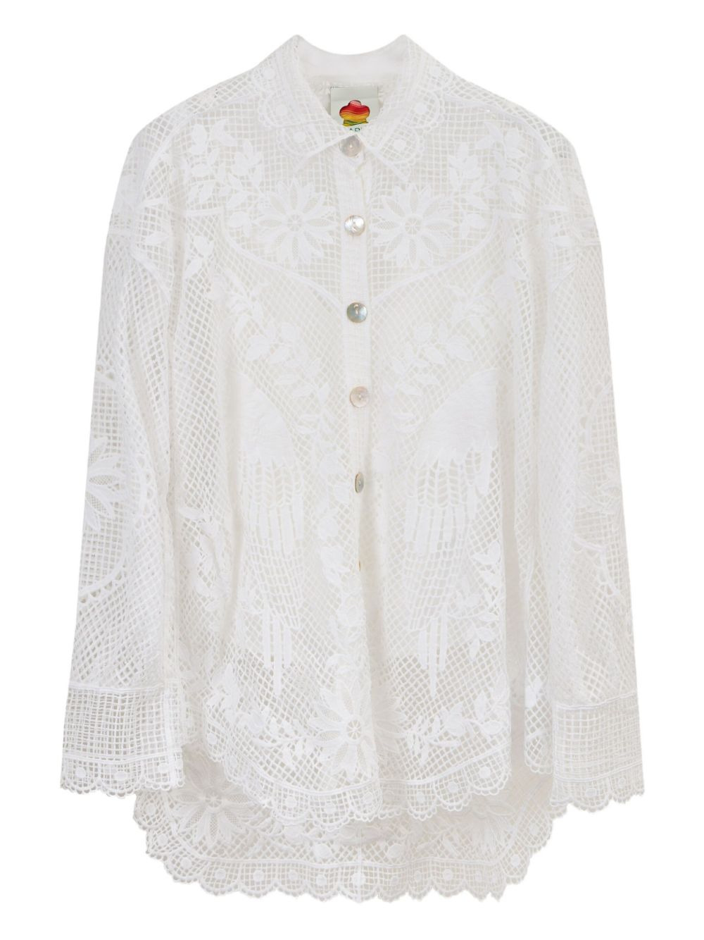 guipure lace shirt Highlights - White - Guipure lace - Floral pattern - Snap-fit to the front - Scalloped hem - Long sleeves Imported Composition viscose 100% Washing instructions Read Manufacturer Guidelines