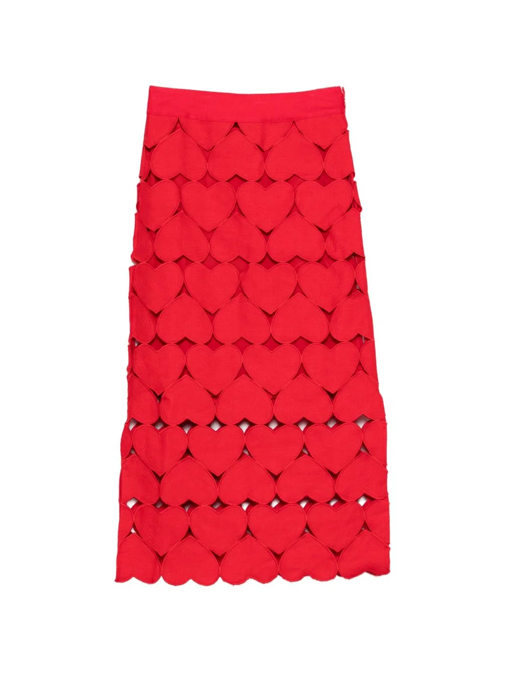 heart midi skirt Highlights - Red - Heart applique - Scalloped hem - High-waisted - Concealed zip fastening Imported Composition Viscose 100% Washing instructions Hand Wash