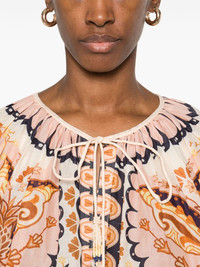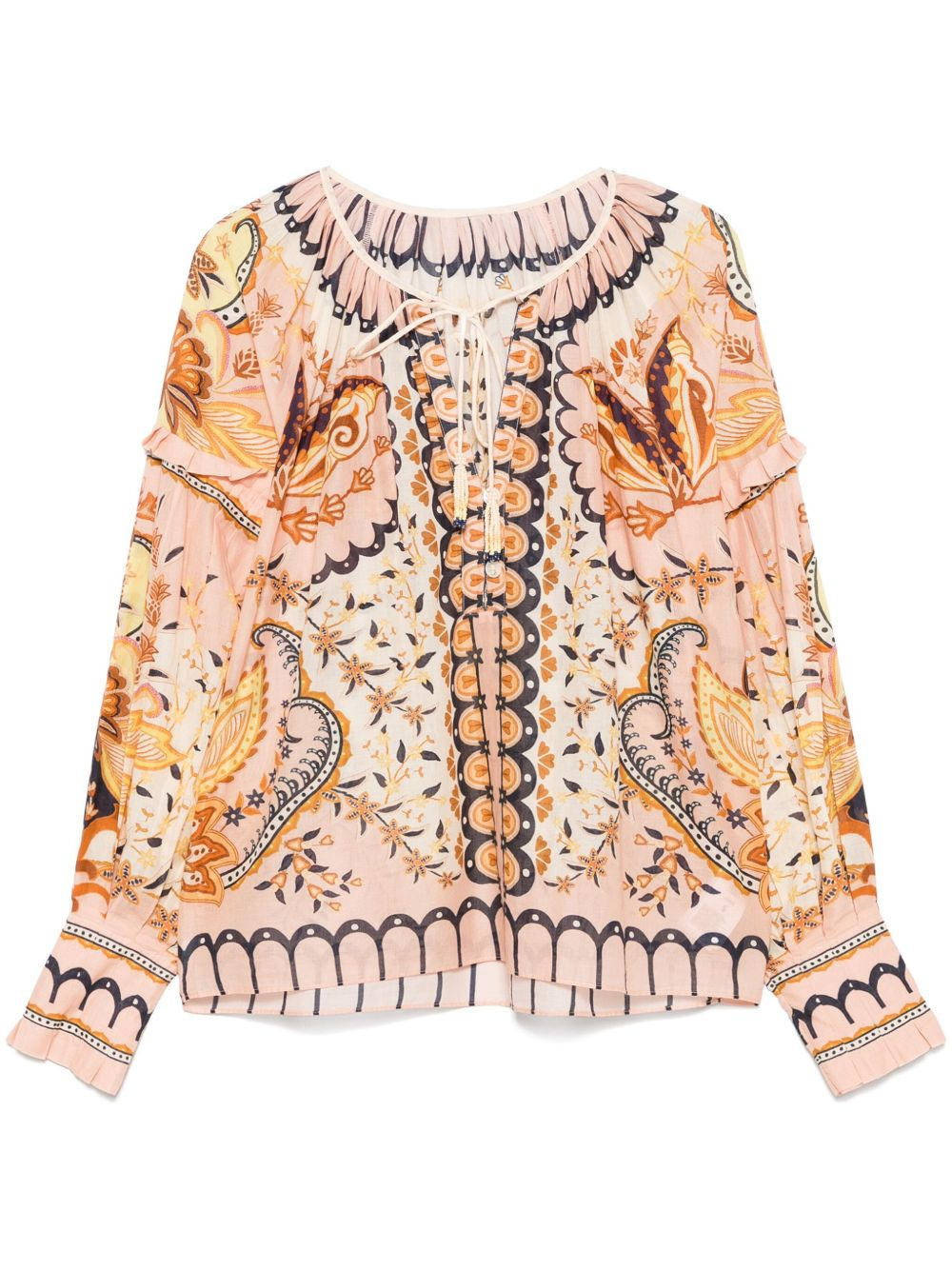 Jaipur blouse Highlights - Blush pink - Front tie fastening - Paisley print - Keyhole neck - Bishop sleeves Imported Composition Cotton 100% SIZE & FIT Model measurements Height 5 ft 10 in(1.77 m) Bust/Chest 29.92 in(76 cm) Hips 34.25 in(87 cm) Waist 23.62 in(60 cm) FittingInformation Designed to be unstructured, offering a loose fit throughout Made from a midweight non-stretch fabric