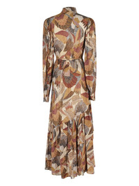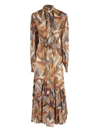 macaws-print ruffled maxi dress Highlights - Brown - All-over pattern - Tie detail - Long sleeves - Ruffled hem - Elasticated waist Imported Composition Viscose 100% Washing instructions Read Manufacturer Guidelines