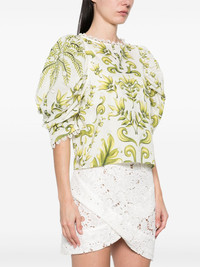 Milani top Highlights - White - Rear button fastening - Balloon sleeves Imported Composition Cotton 100% SIZE & FIT Model measurements Height 5 ft 10 in(1.78 m) Bust/Chest 33.46 in(85 cm) Hips 36.22 in(92 cm) Waist 23.22 in(59 cm) FittingInformation Designed to be unstructured, offering a loose fit throughout Made from a midweight non-stretch fabric Washing instructions Machine Wash