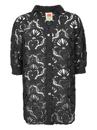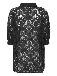 openwork-design button-up top Highlights - Black - Openwork design - Button fastening - Three-quarter sleeves - Classic collar Imported Composition Fabric 100%