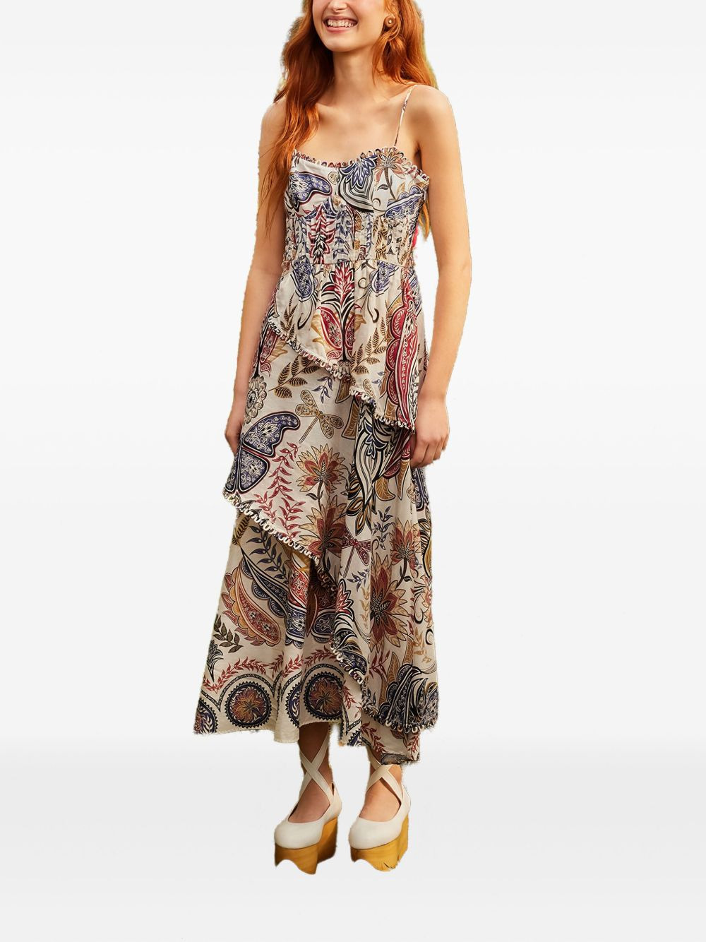 paisley-print midi dress Highlights - White/multicolor - Paisley print - Spaghetti straps - Scallop trim Imported Composition Viscose 100% Washing instructions Machine Wash