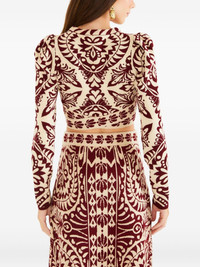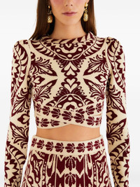patterned long-sleeve top Highlights - Off-white and burgundy - Patterned - Long sleeves - Round neck - Cropped - Shoulder pads Imported Composition Viscose 65%, Polyamide 35% Washing instructions Read Manufacturer Guidelines