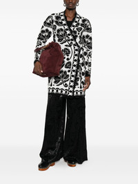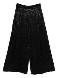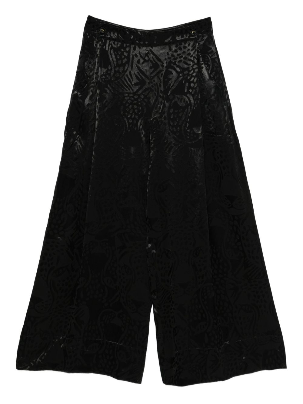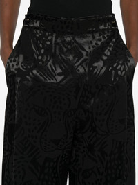 patterned trousers Highlights - Black - All-over pattern - Wide leg - Belt loops - Side pockets Imported Composition Fabric 100% SIZE & FIT Model measurements Height 5 ft 10 in(1.77 m) Bust/Chest 32.28 in(82 cm) Hips 35.03 in(89 cm) Waist 25.19 in(64 cm) Washing instructions Read Manufacturer Guidelines