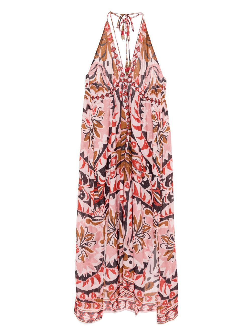 Pineapple Jewelery dress Highlights - Light pink - Tie-fastening straps - V-neck - Adjustable neck strap Imported Composition Viscose 99%, Polyester 1% SIZE & FIT Model measurements Height 5 ft 9 in(1.76 m) Bust/Chest 31.1 in(79 cm) Hips 35.03 in(89 cm) Waist 24.4 in(62 cm) FittingInformation Designed for a close fit at the chest with a loose fit over the waist and hips The adjustable drawstring means that you can adjust this piece’s fit to suit your comfort and preference Made from a lightweight non-stretch fabric Washing instructions Machine Wash