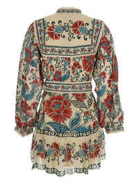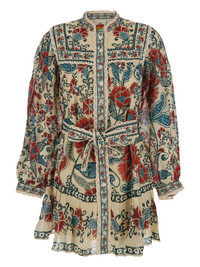 print-floral button mini dress Highlights - Beige, red and multicolor - Floral print - Front button fastening - Belt - Long sleeves - Straight hem Imported Composition Fabric 100% Washing instructions Read Manufacturer Guidelines