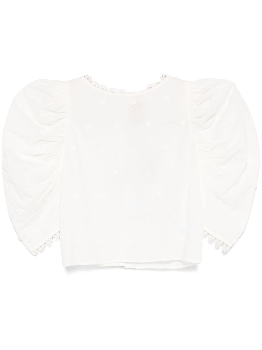 Ricamino blouse Highlights - White - Rear button fastening - All-over floral embroidery - Round neck - Three-quarter length sleeves Imported Composition Cotton 100% SIZE & FIT Model measurements Height 5 ft 11 in(1.8 m) Bust/Chest 31.49 in(80 cm) Hips 36.61 in(93 cm) Waist 24.4 in(62 cm) FittingInformation Designed for a slim fit that sits just away from the body offering a close yet comfortable fit Made from a midweight non-stretch fabric Washing instructions Machine Wash