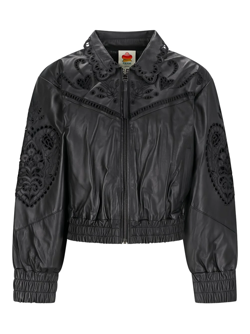 Richelieu heart-shape cut-out leather jacket Highlights - Black - Cut-out detail - Zip fastening - Elasticated hem - Long sleeves Imported Composition Calf Leather 100% Washing instructions Dry Clean Only